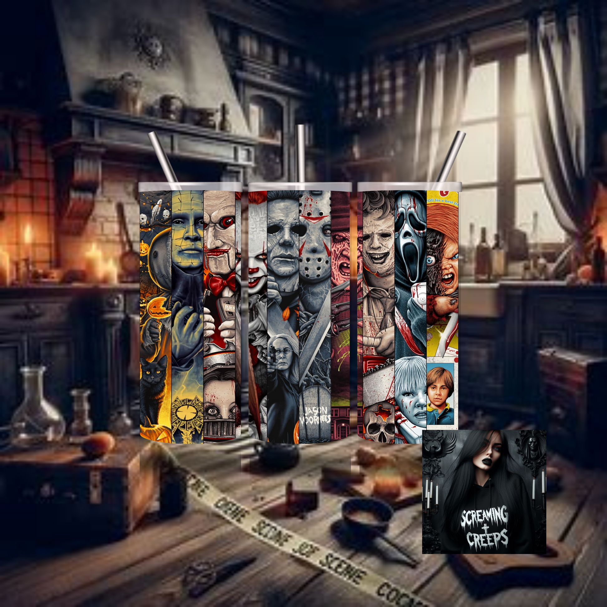 Featuring a scary design, this horror tumbler is sure to be a hit with horror movie lovers or anyone who enjoys a good scare. It's the ideal addition to any horror-themed party or event. Looking for a Halloween gift for your horror-loving friends? Look no further than this horror tumbler!