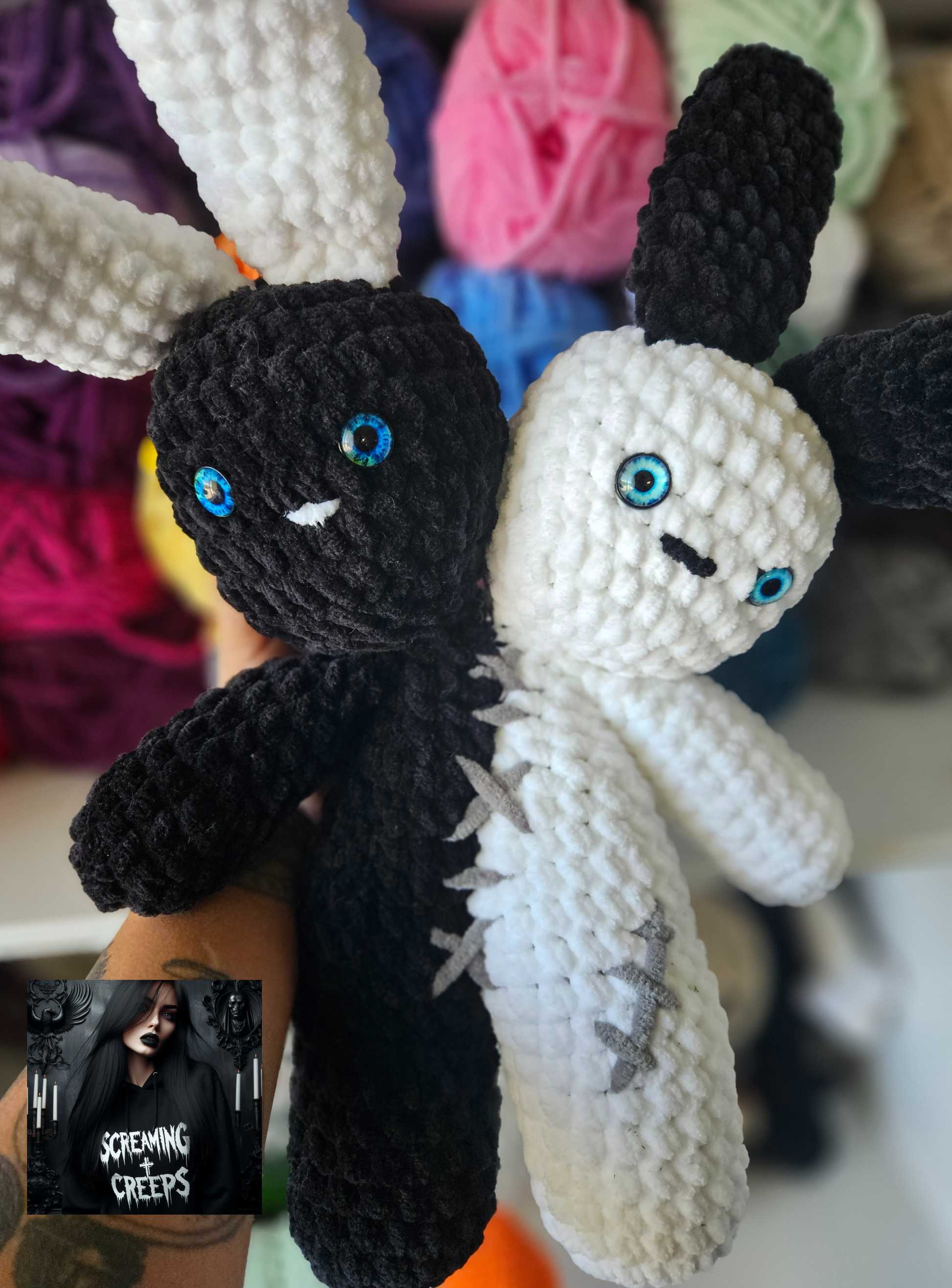 The product(s) you receive might vary slightly from the product picture due to the nature of your product(s) being 100% handmade for each order. Please note that these items are crocheted and are not intended for rough play. A lot of tugging and pulling, and the item may come undone. Screaming Creeps is not responsible if this happens.