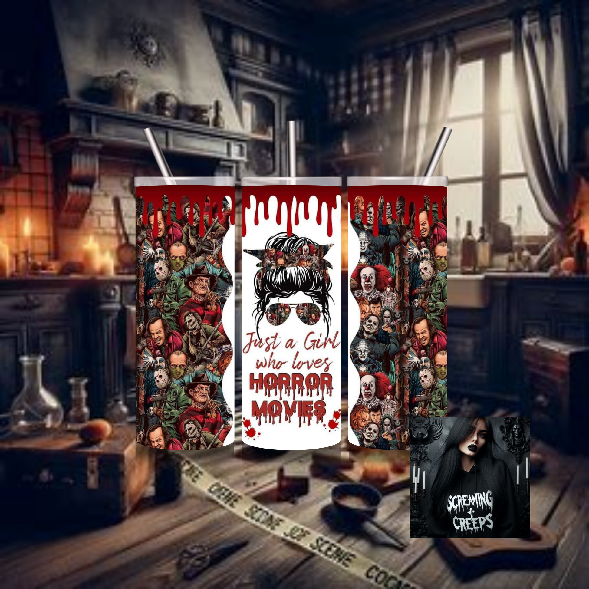 Just a Girl Who Loves Her Horror Movies 20 oz Insulated Drinking Tumbler