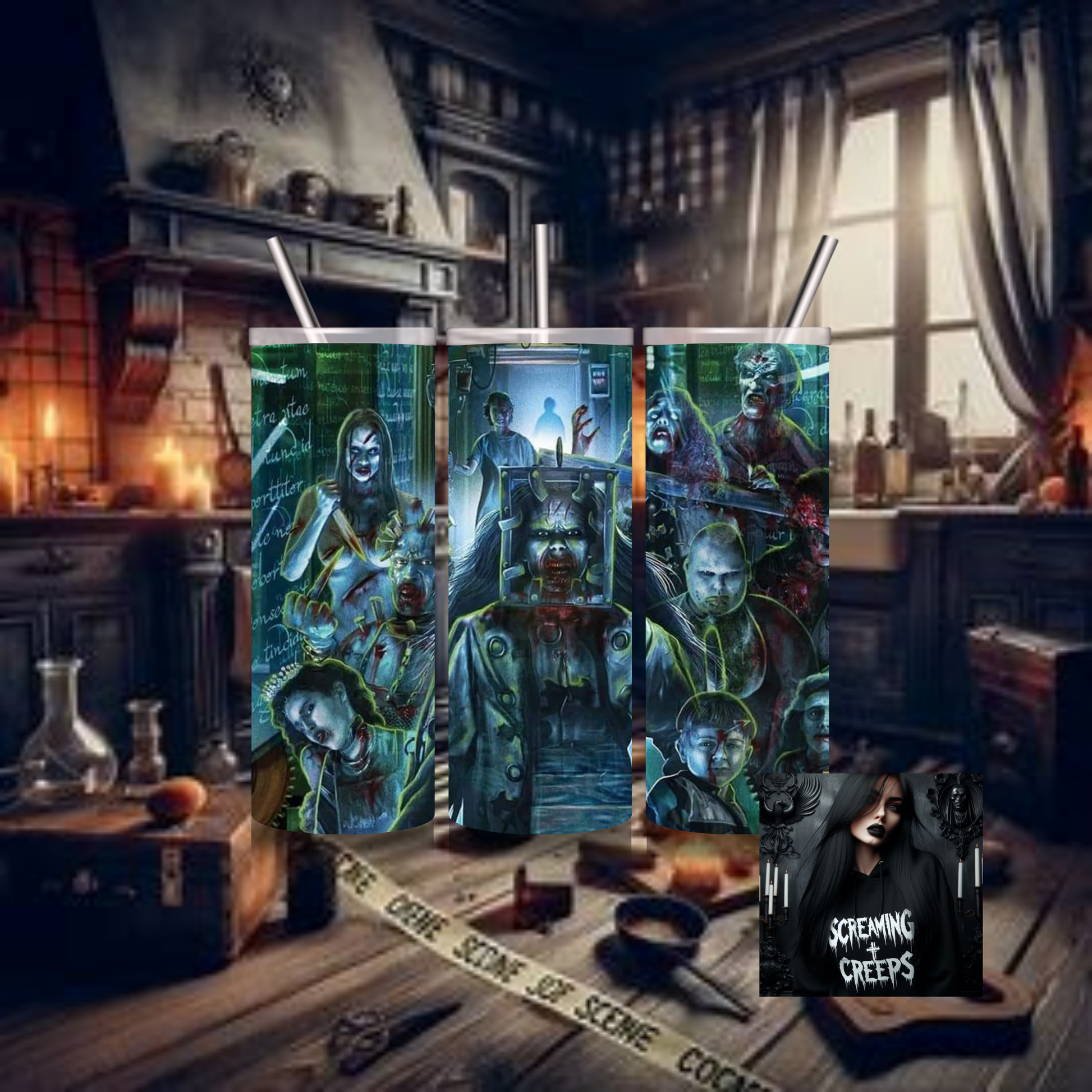 Featuring a scary design, this horror tumbler is sure to be a hit with horror movie lovers or anyone who enjoys a good scare. It's the ideal addition to any horror-themed party or event. Looking for a Halloween gift for your horror-loving friends? Look no further than this horror tumbler!